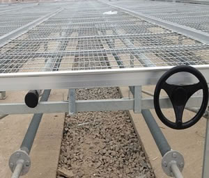 網(wǎng)面平整,焊接牢固,承重性好,尺寸準確,安裝施工方便,抗腐蝕耐用。主體結構材質采用鋁合金邊框網(wǎng)格為130㎜×30㎜(長×寬),熱鍍鋅材料,防腐性能高,承重能力好,壽命長可,左右移動較長距離,高度方向上可以進行微調具有防翻限位裝置,防止由于偏重引起的傾斜問題可在任意兩個苗床間產(chǎn)生約0.6(或0.8)米的作業(yè)通道。配置說明:溫室配置移動式苗床數(shù)量,根據(jù)育苗或生產(chǎn)實際用的溫室面積來定,使用壽命:編織網(wǎng)部分20年,其它結構25年。